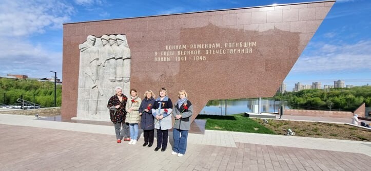 Мы возложили цветы к мемориалу ВОИНАМ — РАМЕНЦАМ, ПОГИБШИМ В ГОДЫ ВЕЛИКОЙ ОТЕЧЕСТВЕННОЙ ВОЙНЫ 1941-1945 ГОДА и вечному огню на площади Победы города Раменское.